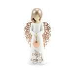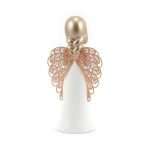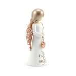 Angelo stilizzato, della collezione You are an angel, con ali e cuore 3D in metallo e incisione “Un Cuore per Amarti” realizzato in resina dipinta a mano e applicazione di strass tra i capelli.